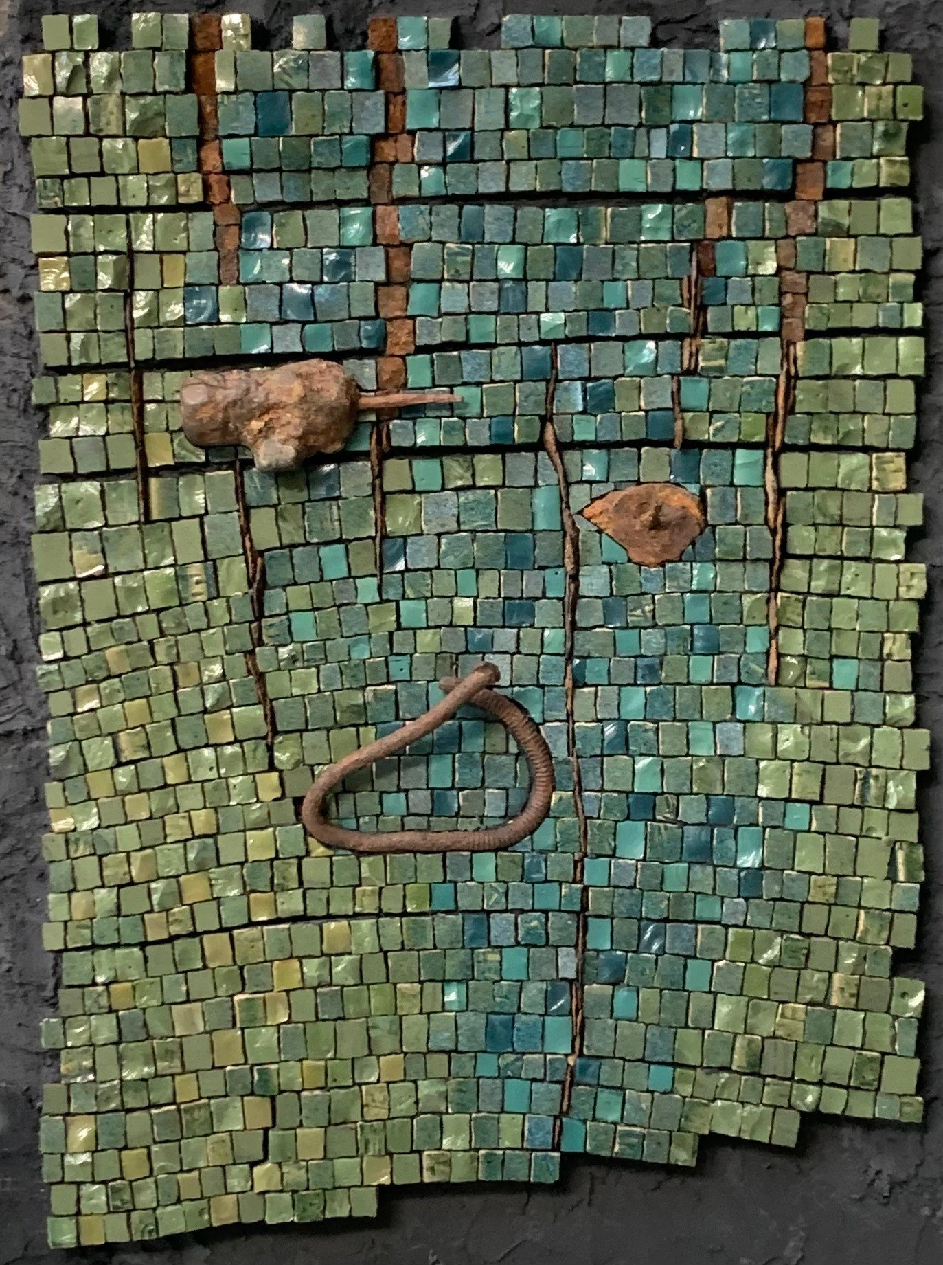 2023; 9” x 12”; rusted iron, glass, stone, tile
